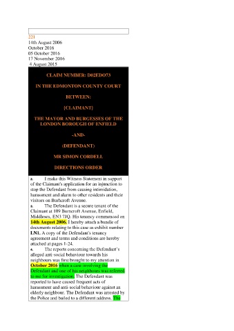 LN1. A copy of the Defendant's tenancy