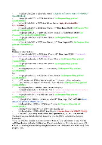 - 236 People Cads 10506 to 10742 time 17 mins (In Progress Way grid ref