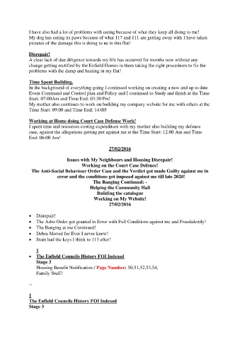 I spent time and resources costing expenditure with my mother also building my defence