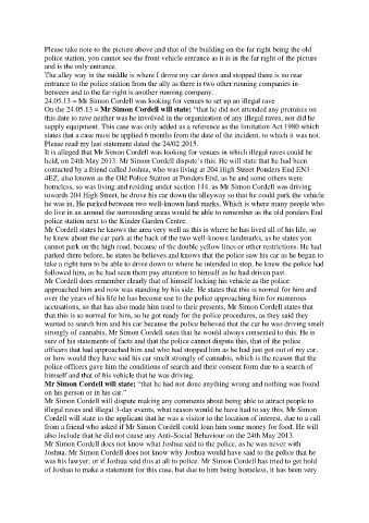On the 24.05.13 = Mr Simon Cordell will state; “that he did not attended any premises on