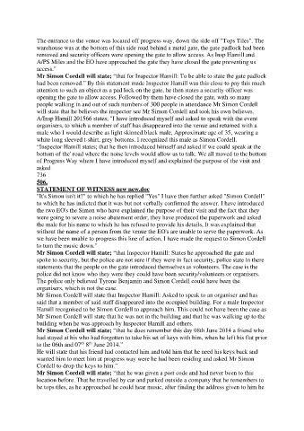 Mr Simon Cordell will state; “that Inspector Hamill: States he approached the gate and