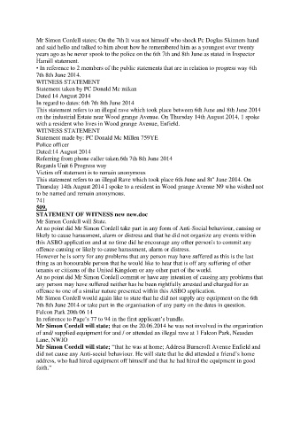 Mr Simon Cordell will state; “that he was at home; Address Burncroft Avenue Enfield and