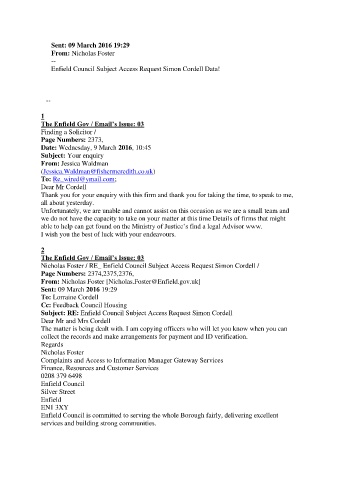 Enfield Council Subject Access Request Simon Cordell Data!
