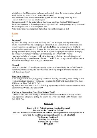 Avenue and continue to Slamming the water tap on and off, causing damage to my health and