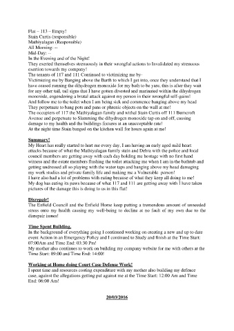 At the night time Stain banged on the kitchen wall for hours again at me!