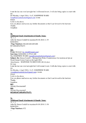 Subject: Re: Simon Cordell v. Metropolitan Police Commissioner for mention at 2pm at