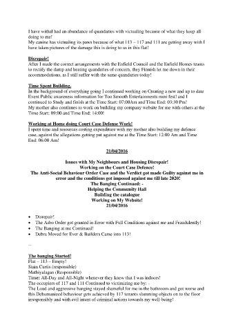 The occupiers of 117 and 111 Continued to victimizing me by: -