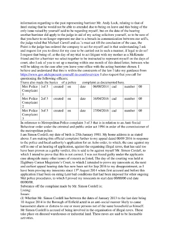 Substance off the complaint made by Mr. Simon Cordell is;