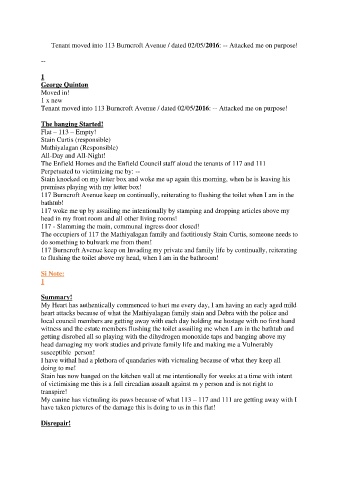 Tenant moved into 113 Burncroft Avenue / dated 02/05/2016: -- Attacked me on purpose!