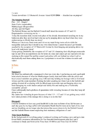 Tenant moved into 113 Burncroft Avenue / dated 02/05/2016: -- Attacked me on purpose!