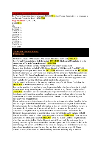 Re: Formal Complaint due to letter dated 29/11/2016 this Formal Complaint is to be added to
