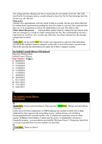 against Waltham Forest District Council and the police. (Complainant is living in a