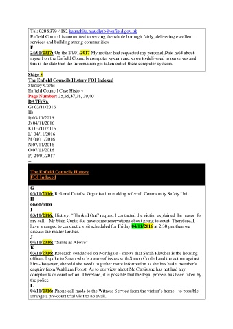 enquiry from Waltham Forest. As to our view about Mr Curtis she has not had any