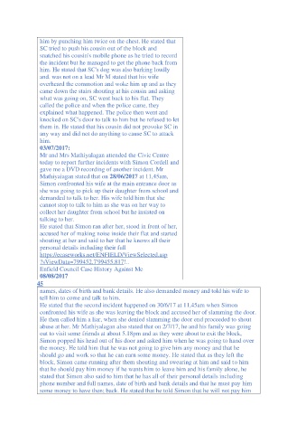 abuse at her. Mr Mathiyalagan also stated that on 2/7/17, he and his family was going