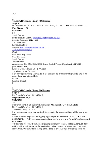 I know Formal Complaints are ongoing regarding letters written on the 24/11/2016 and