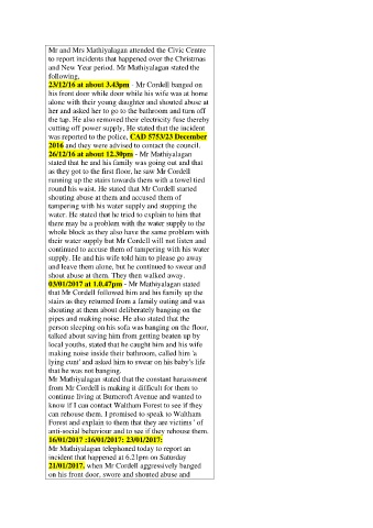 21/01/2017. when Mr Cordell aggressively banged