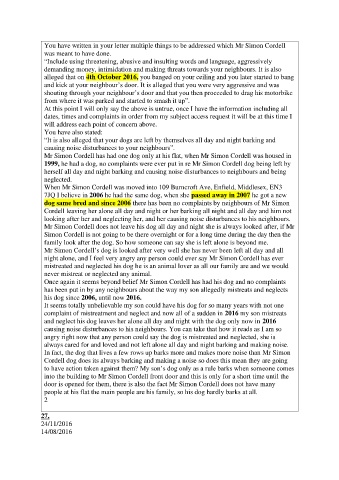 You have written in your letter multiple things to be addressed which Mr Simon Cordell