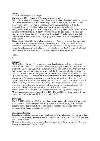 The tenants of 113 - 117 and 111 Continue to victimize me by-: --