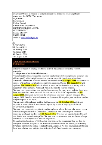 Regarding the allegations of ASB against your son and the issues regarding his dog, we