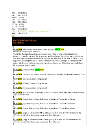 05/10/2016: Threats and intimidation, Date reported: 06/10/2016