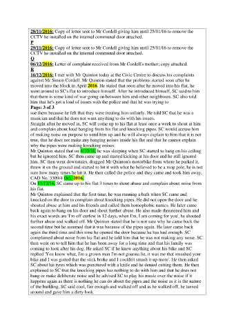On 11/12/16, SC came up to his flat 3 times to shout abuse and complain about noise from