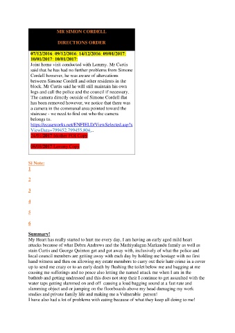 between Simone Cordell and other residents in the