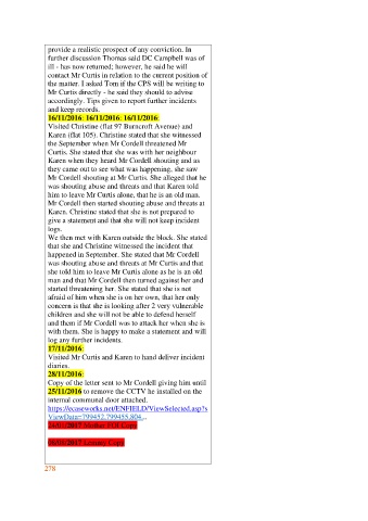 25/11/2016 to remove the CCTV he installed on the