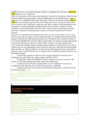 and speak to anyone at Enfield Council on behalf of my son and it would be on their