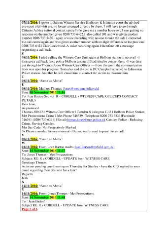 08/11/2016: I tried calling the Witness Care Unit again at Holbom station to no avail -1