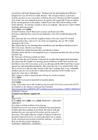I received a call from Thomas Jones - Witness Care he advised that the CPS have