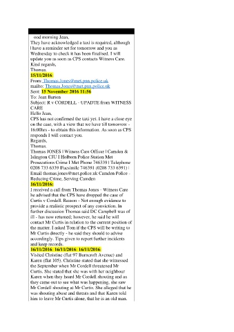 I received a call from Thomas Jones - Witness Care