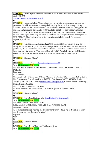 08/11/2016: I tried calling the Witness Care Unit again at Holbom station to no avail -1