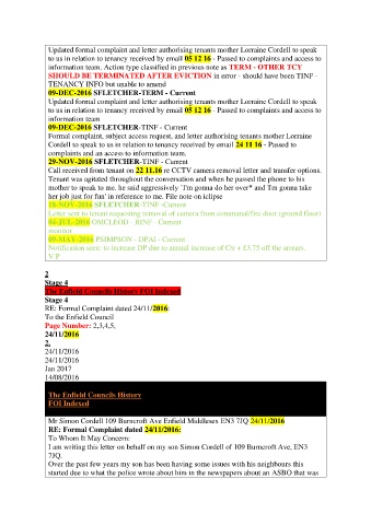 Updated formal complaint and letter authorising tenants mother Lorraine Cordell to speak