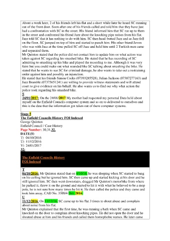 11/12/2016: On 11/12/16, SC came up to his flat 3 times to shout abuse and complain