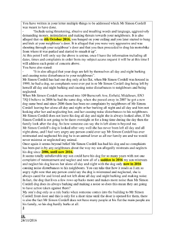 - “It is also alleged that your dogs are left by themselves all day and night barking