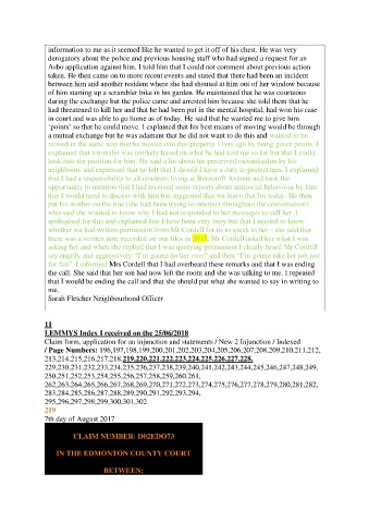 neighbours and expressed that he felt that I should I have a duty to protect him. I explained