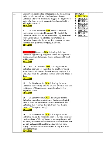 11 aggressively, accused him of banging on the floor, swore 04/10/2016