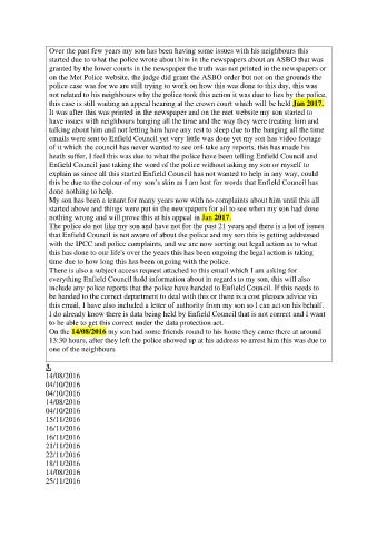 that Enfield Council is not aware of about the police and my son this is getting addressed