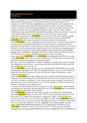 On the 22/11/2016 I went to my son’s home and there was a letter from Sarah Fletcher