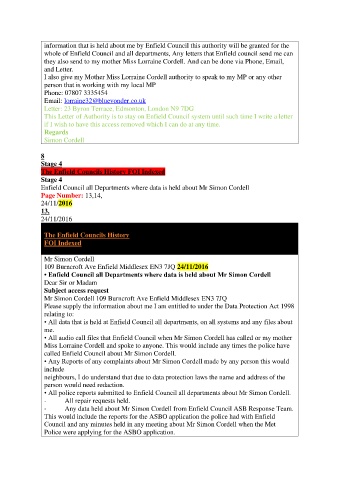 I also give my Mother Miss Lorraine Cordell authority to speak to my MP or any other