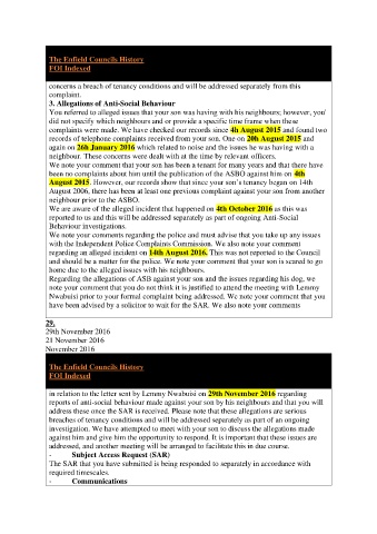 Regarding the allegations of ASB against your son and the issues regarding his dog, we