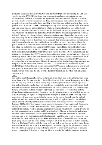 get him out. On the 16/11/2016 I tried to speak to my son’s housing officer Sarah Fletcher to