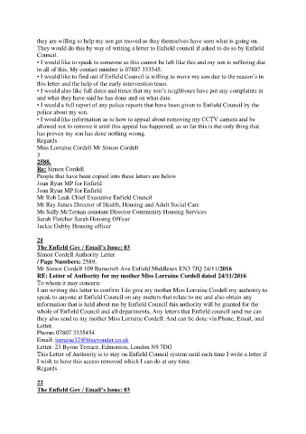 RE: Letter of Authority for my mother Miss Lorraine Cordell dated 24/11/2016