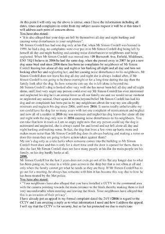 • "It is also alleged that your dogs are left by themselves all day and night barking and