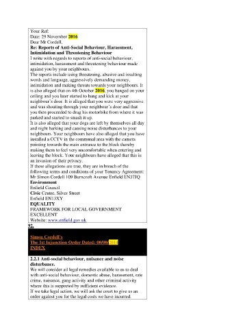 Re: Reports of Anti-Social Behaviour, Harassment,