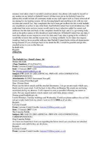 my mother on my behalf to Enfield Council All that were put in for Enfield Council to