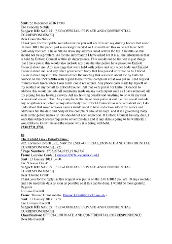 my mother on my behalf to Enfield Council All that were put in for Enfield Council to