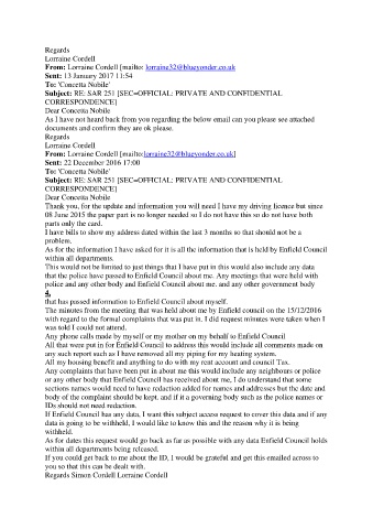 that the police have passed to Enfield Council about me. Any meetings that were held with