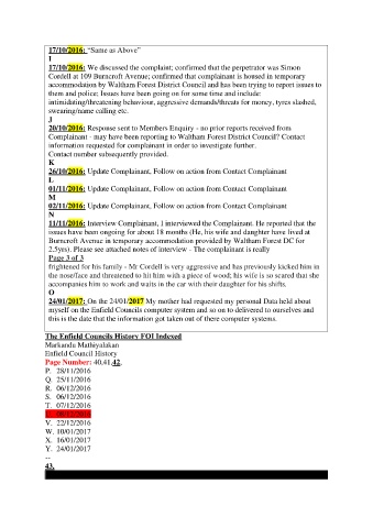 Complainant - may have been reporting to Waltham Forest District Council? Contact