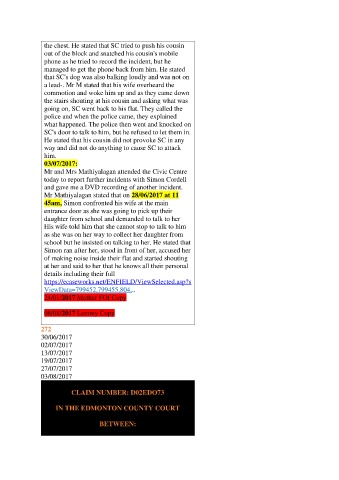 the chest. He stated that SC tried to push his cousin
